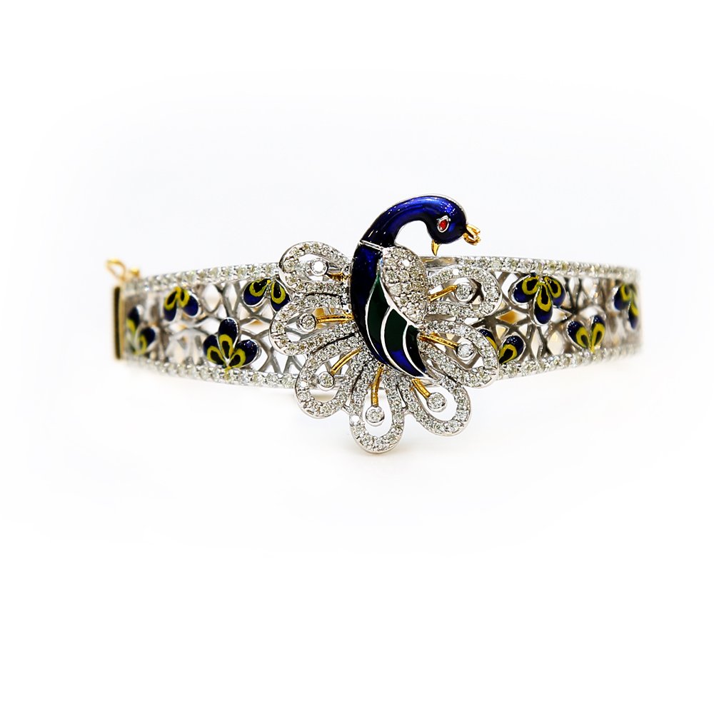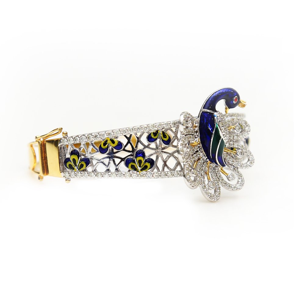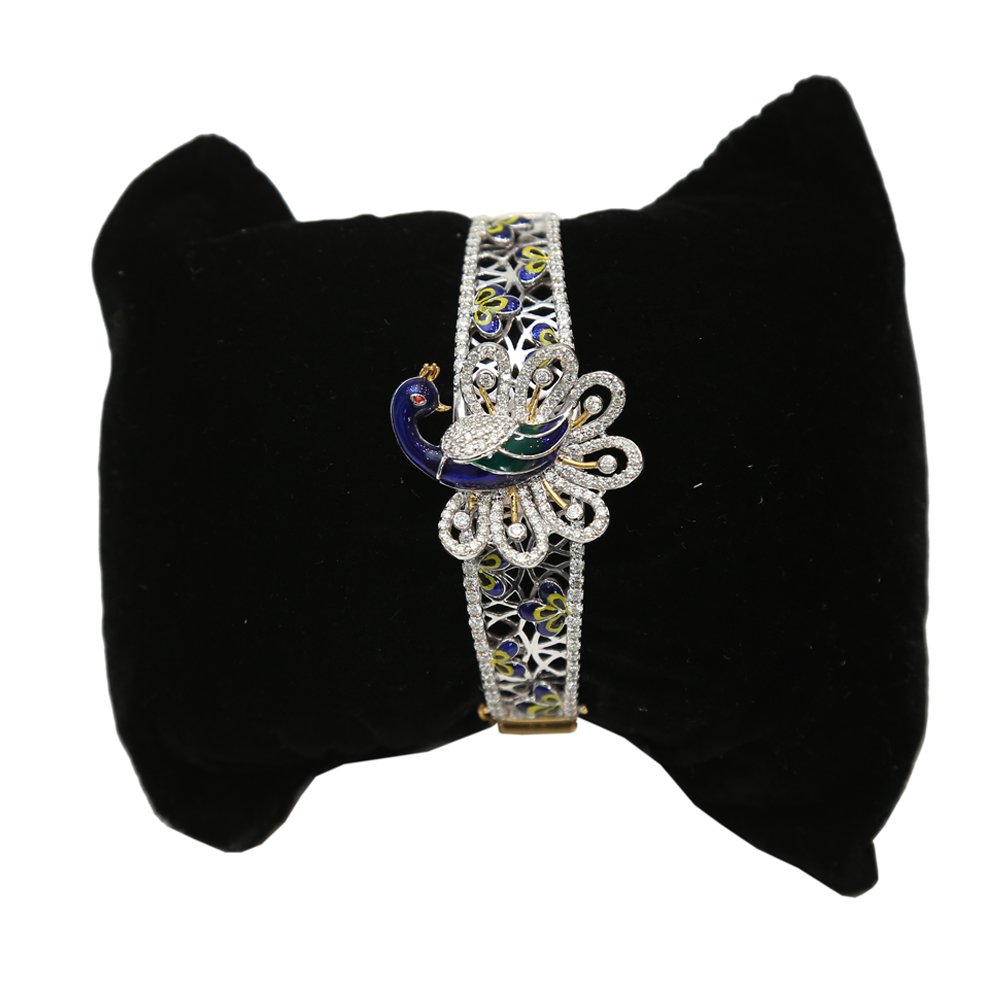 A handcrafted bling that transcends the everyday, making the ordinary magnificent. A creative twist on a familiar object makes it ethereal. The exclusive design resonates with an invincible luxurious charm. The sparkle of diamonds is for eternity. The bracelet has been meticulously rendered by our adept craftsmen with a skillful lineage. The state-of-the art piece proffers fragility and royalty. A classic motif that showcases your adoration for your loved ones.