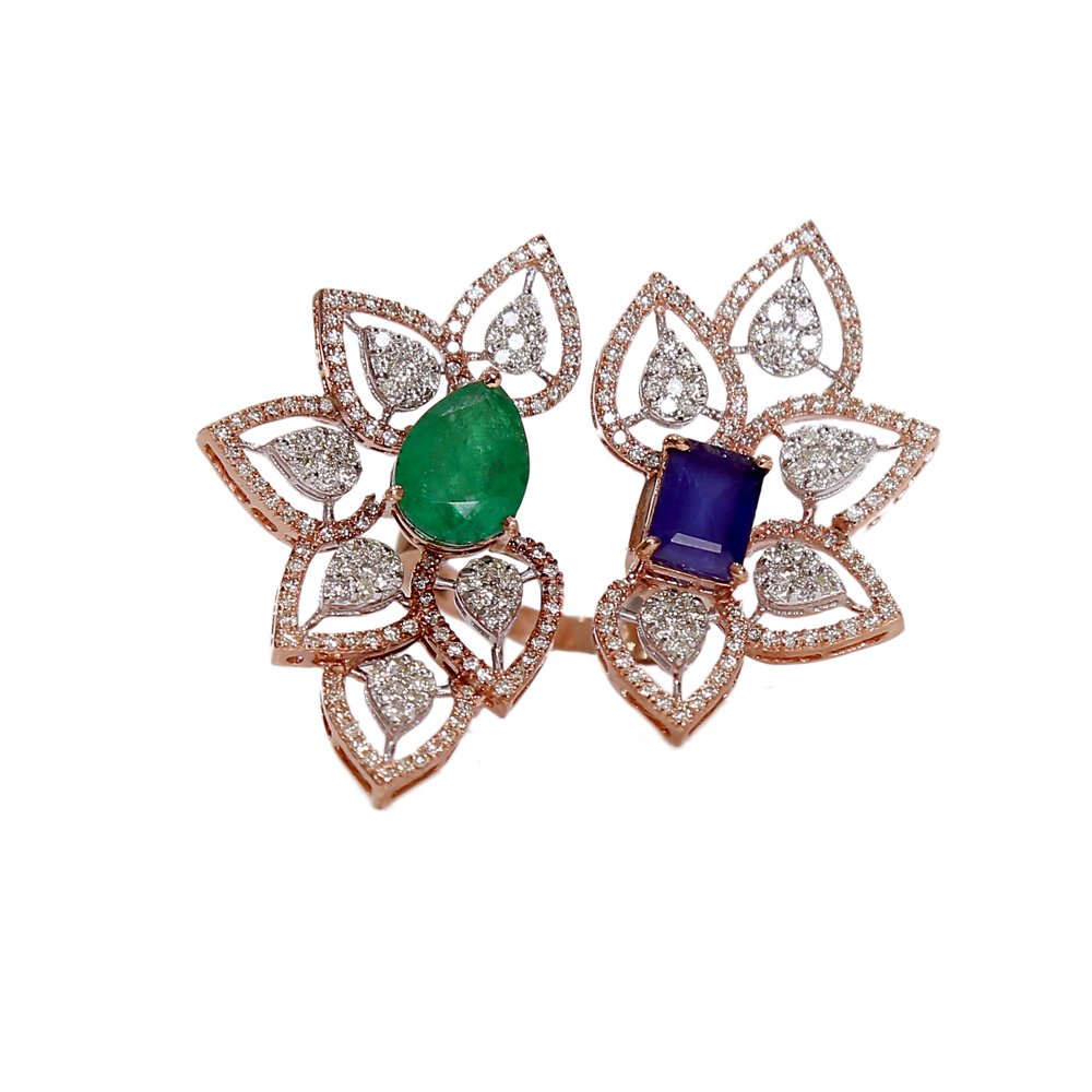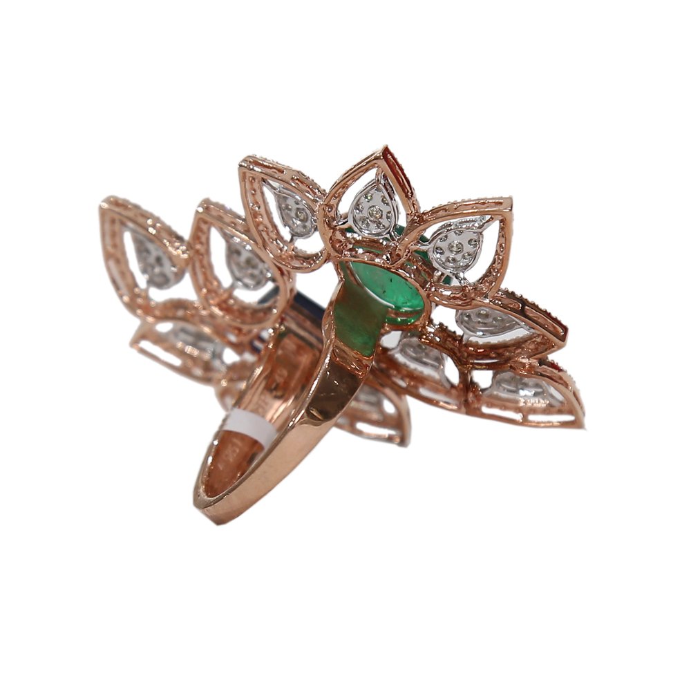 The brilliantly-cut diamonds lend the fragility to the queen. The emerald adds to the luxurious charm. The ring has been meticulously rendered by our adept craftsmen with a skillful lineage. The handpicked diamonds and the lustrous gold have been handcrafted into a state-of-the-art piece. It is a classic motif to showcase your romance for your loved ones.