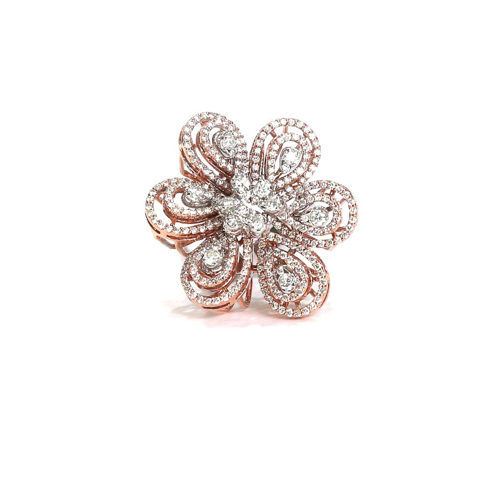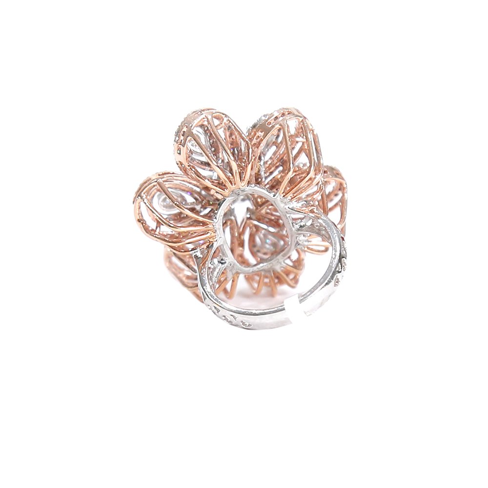 An Ornate piece by Krown Kouture, Fleur du ciel exhibits the delicate yet strong feminine appeal. The bloomed flower is always a sight to behold. Inspired by them, this ring is a full blossomed pretty flower. This diamond stylized flower will adorn a woman’s persona.