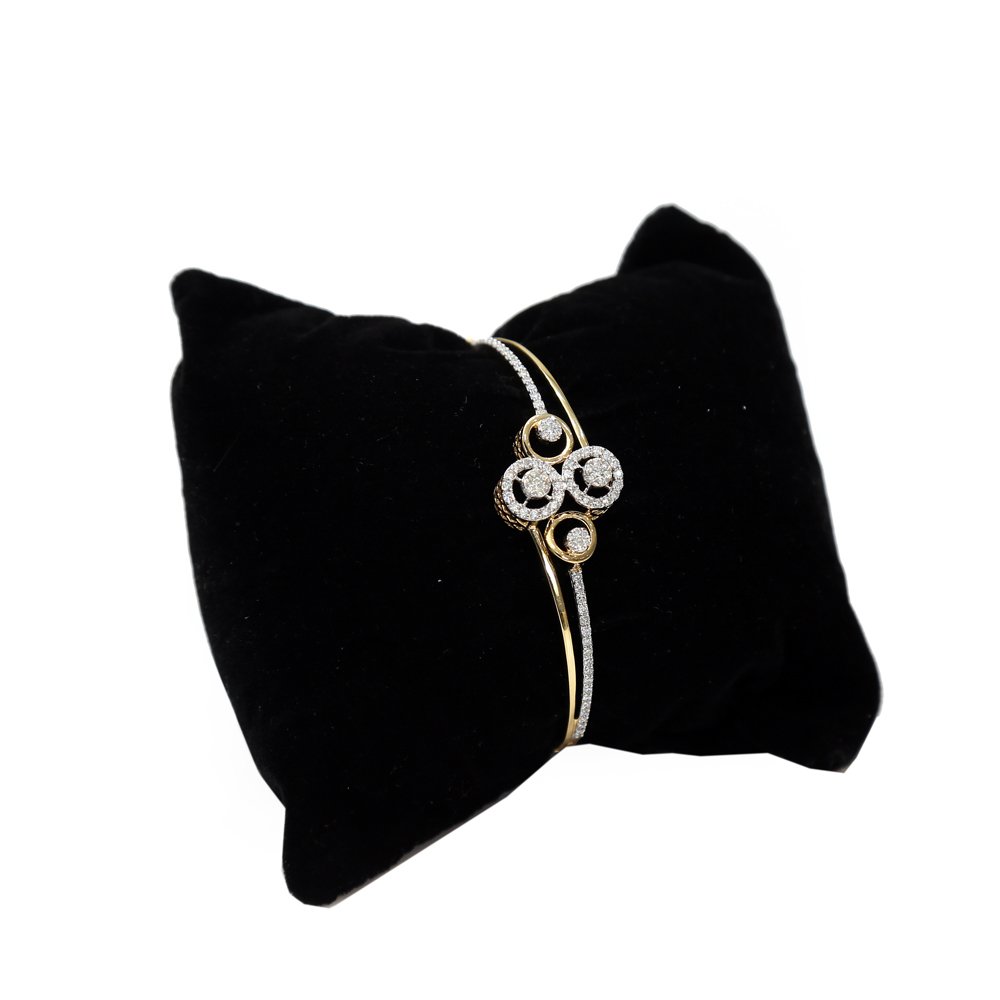 A handcrafted bling that transcends the everyday, making the ordinary exquisite. A creative twist on a familiar object makes it ethereal. The exclusive design resonates with an invincible luxurious charm. The sparkle of diamonds is for eternity. The bracelet has been meticulously rendered by our adept craftsmen with a skillful lineage. The state-of-the art piece proffers fragility and royalty. A classic motif that showcases your adoration for your loved ones.